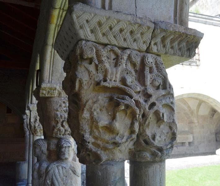 cloître, galerie ouest, détail d'un des chapiteaux jumelés sculptés