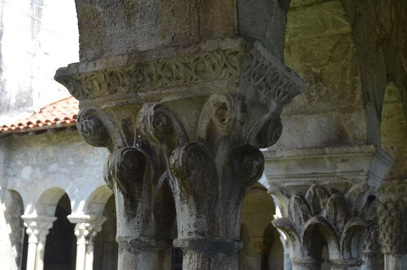 cloître, galerie sud, détail d'un des chapiteaux jumelés sculptés