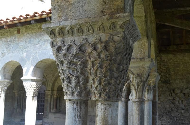 cloître, galerie sud, détail d'un des chapiteaux jumelés sculptés