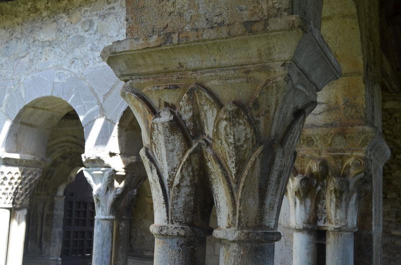 cloître, galerie sud, détail d'un des chapiteaux jumelés sculptés