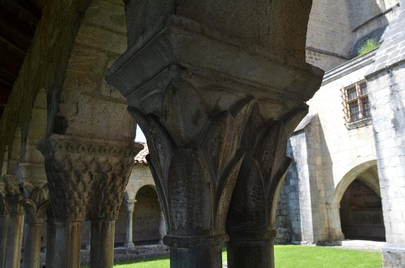 cloître, galerie sud, détail d'un des chapiteaux jumelés sculptés