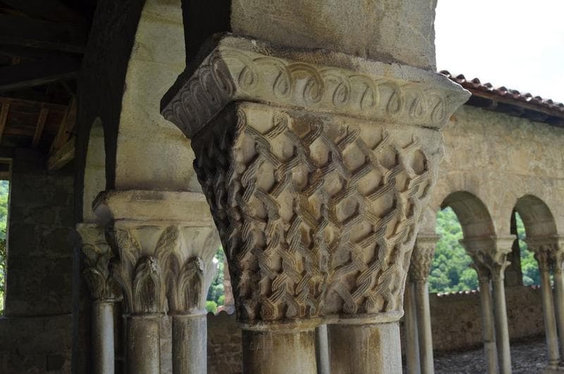 cloître, galerie est, détail d'un des chapiteaux jumelés sculptés