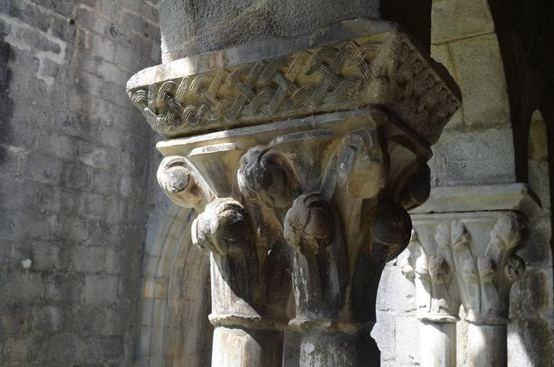 cloître, galerie est, détail d'un des chapiteaux jumelés sculptés