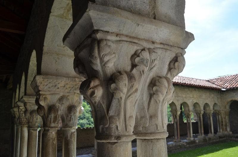 cloître, galerie est, détail d'un des chapiteaux jumelés sculptés