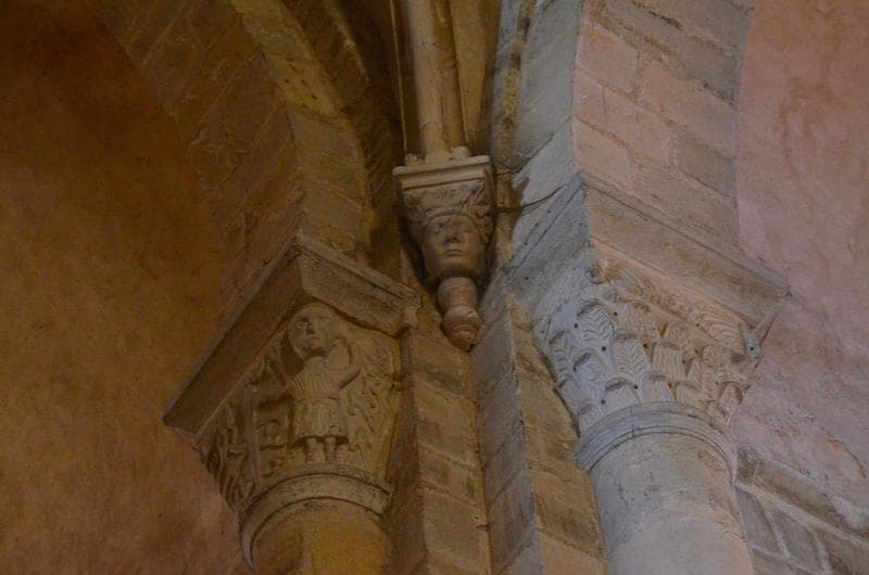 nef, détail d'un culot et de deux chapiteaux sculptés