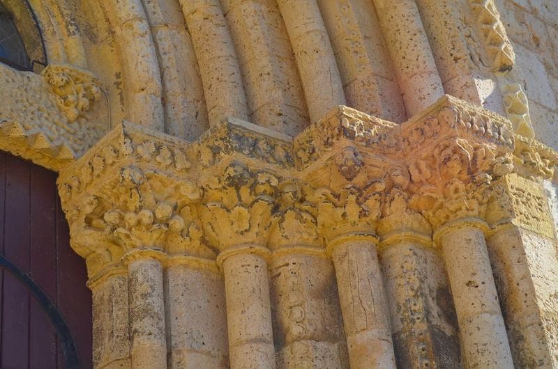 portail occidental, ébrasement de droite, détail des chapiteaux