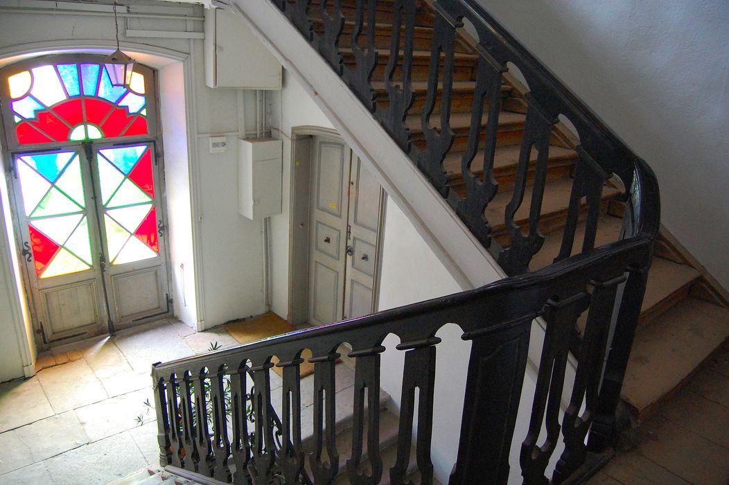 escalier, rampe en bois à partie du 1er niveau, vue générale