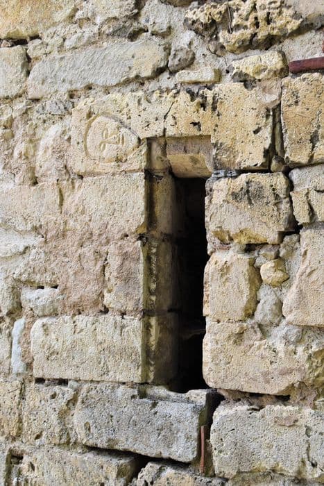 POP | Plateforme ouverte du patrimoineChâteau de Bellenaves : Donjon, détail d'un dessin gravé sur le linteau d'une fenêtre