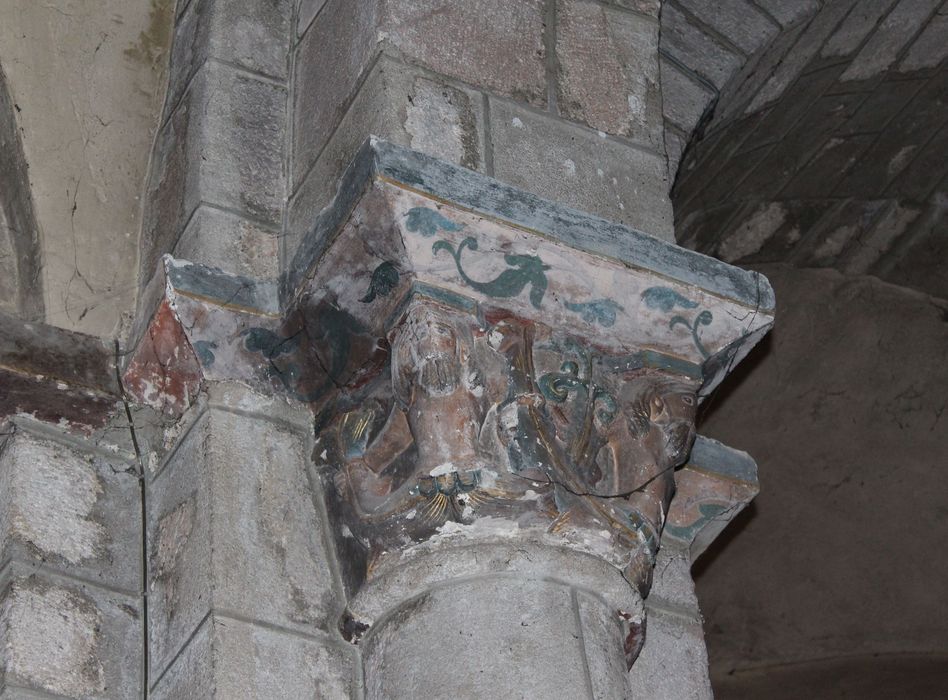 Eglise Saint-Géraud : Nef, détail d'un chapiteau sculpté