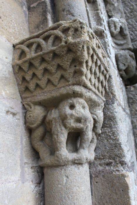 Eglise Saint-Nicolas : Portail occidental, détail du chapiteau de droite
