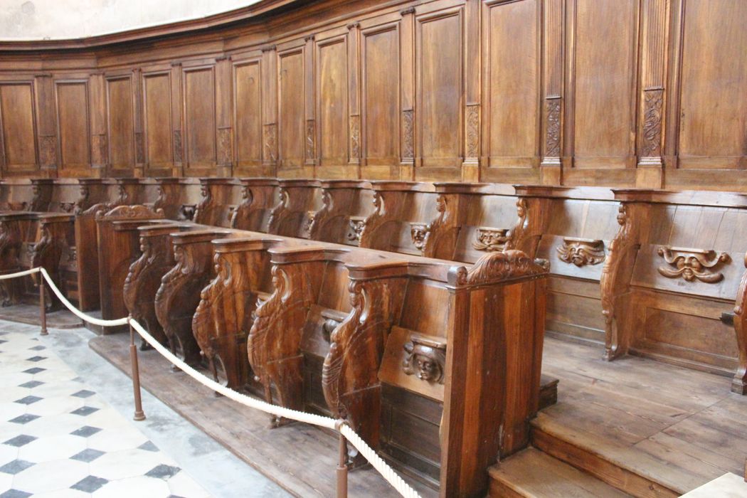 stalles, lambris de revêtement, vue partielle