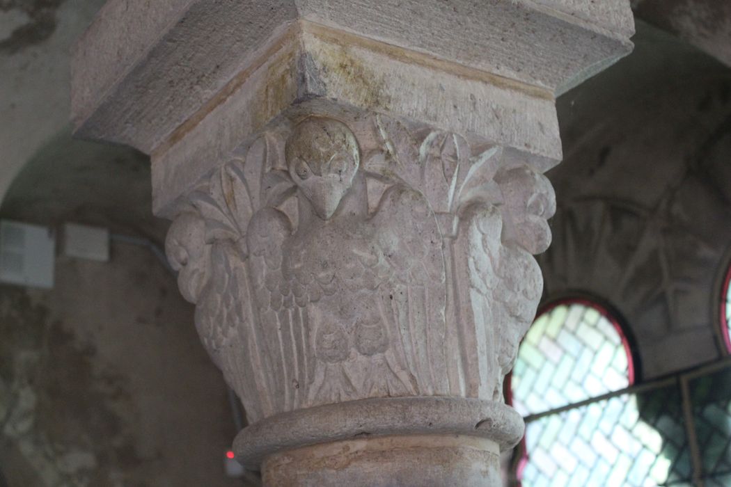 Eglise Saint-Martin : Salle capitulaire, détail d'un chapiteau