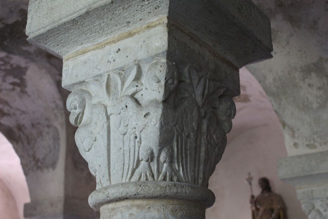 Eglise Saint-Martin : Salle capitulaire, détail d'un chapiteau