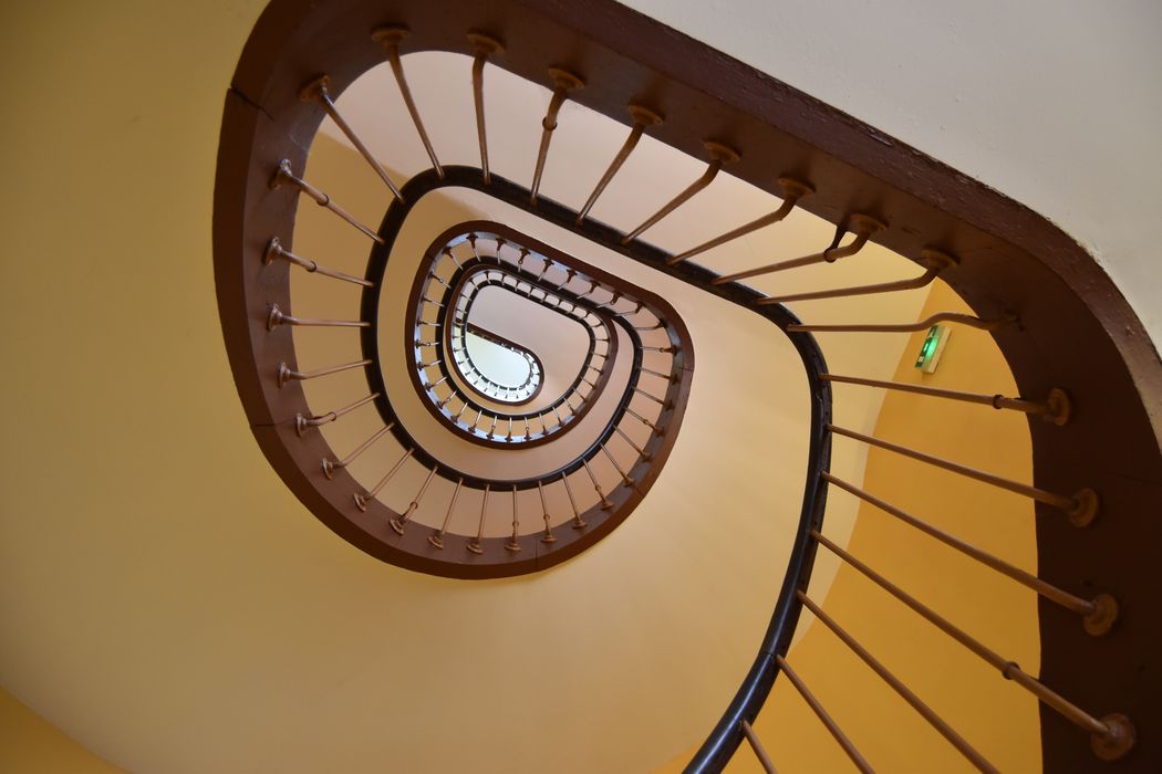 POP | Plateforme ouverte du patrimoinebâtiment des logements, pavillon central, cour intérieure, escalier de circulation, angle nord-est, vue générale