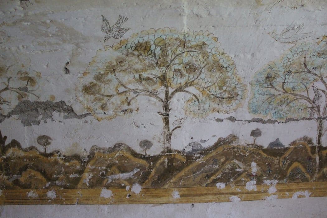 peinture monumentale décorative de la chambre voûtée (aile nord, 1er étage, salle nord), vue partielle