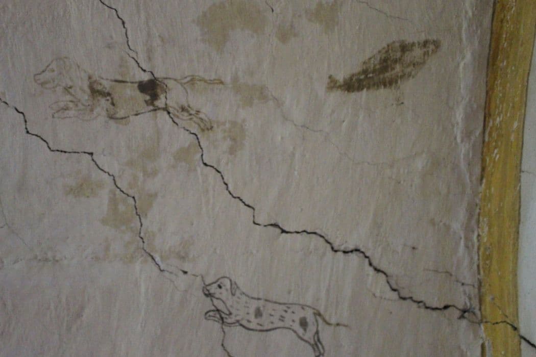 peinture monumentale décorative de la chambre voûtée (aile nord, 1er étage, salle nord), détail