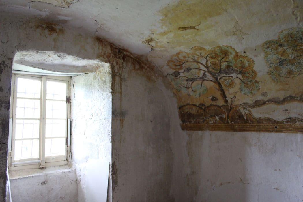 peinture monumentale décorative de la chambre voûtée (aile nord, 1er étage, salle nord), vue partielle