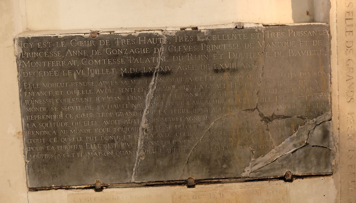 plaque funéraire d'Anne de Gonzague de Clèves, morte en 1684