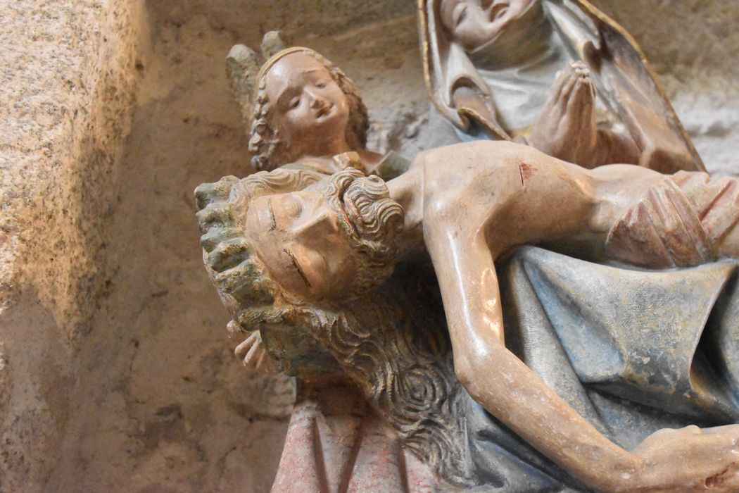 POP | Plateforme ouverte du patrimoinegroupe sculpté (statuette) : Vierge de Pitié entre sainte Madeleine et un ange, vue partielle
