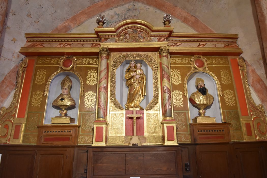 POP | Plateforme ouverte du patrimoineretable de la chapelle latérale sud, bustes-reliquaires : Saint Augustin, saint Clair, statue : Vierge à l’Enfant