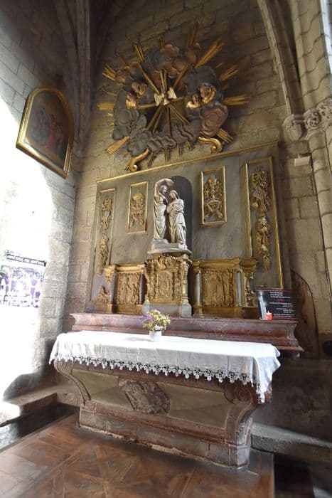 tabernacle, éléments de retable : Saint Augustin avec un enfant, Saint Pierre aidant un infirme, et gloire : Colombe du Saint-Esprit