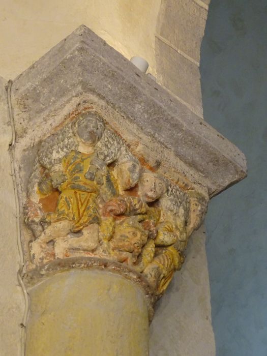 déambulatoire du choeur, détail d’un chapiteau : Porteurs de moutons