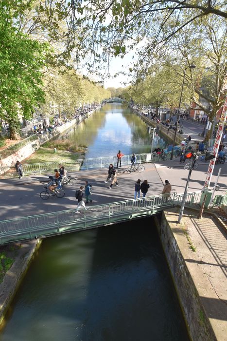POP | Plateforme ouverte du patrimoinevue générale du canal depuis la passerelle Arletty en direction du Sud-Est, au premier plan de pont-tournant de la Grange aux Belles
