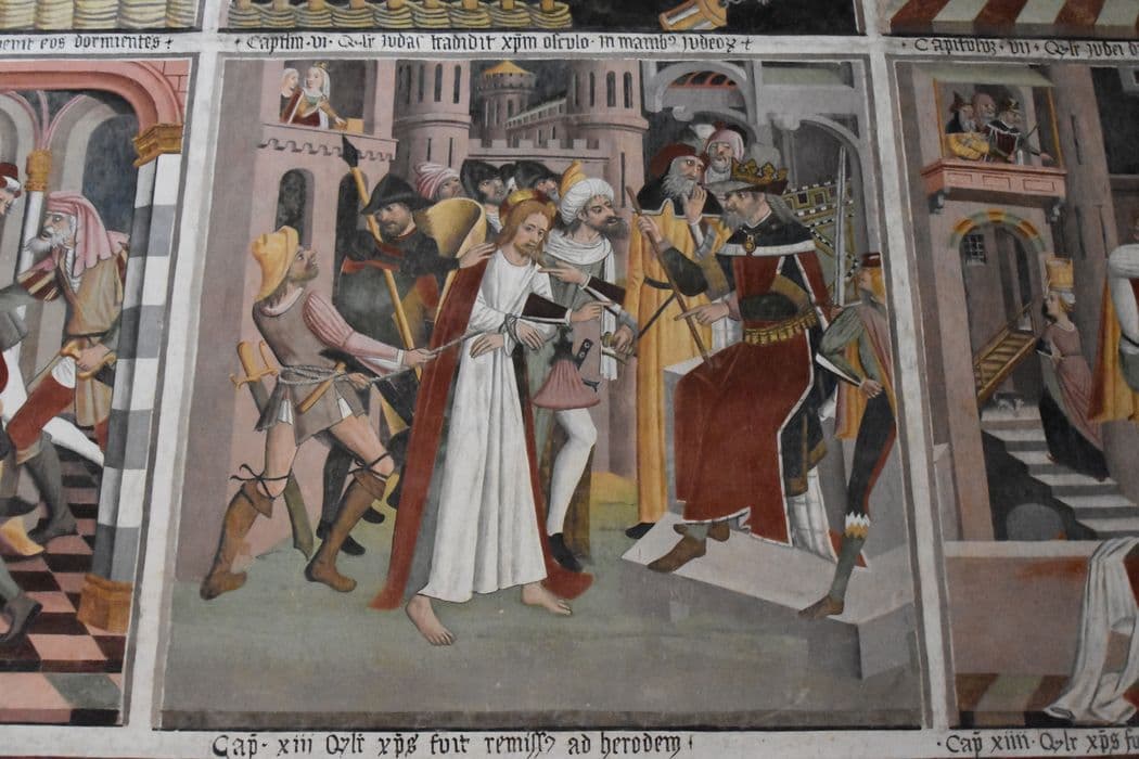 peintures monumentales de la nef, détail : Christ devant Nérode