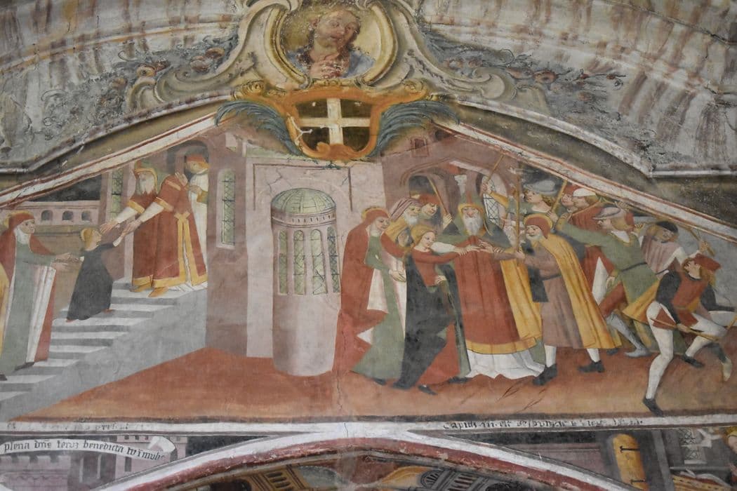 POP | Plateforme ouverte du patrimoinepeintures monumentales de l’arc triomphal, détails : Présentation de Marie au Temple et Mariage de la Vierge