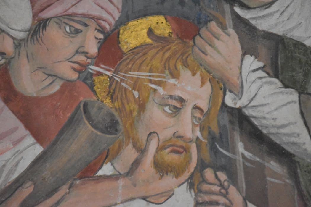 peintures monumentales de la nef, cycle de la Passion : Christ aux outrages (le), détail