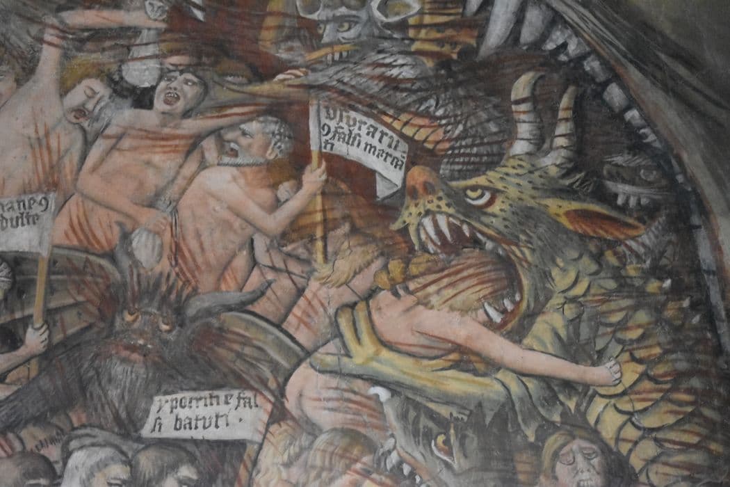 peintures monumentales de la nef, revers du mur ouest : Jugement dernier (le), détail de l’Enfer
