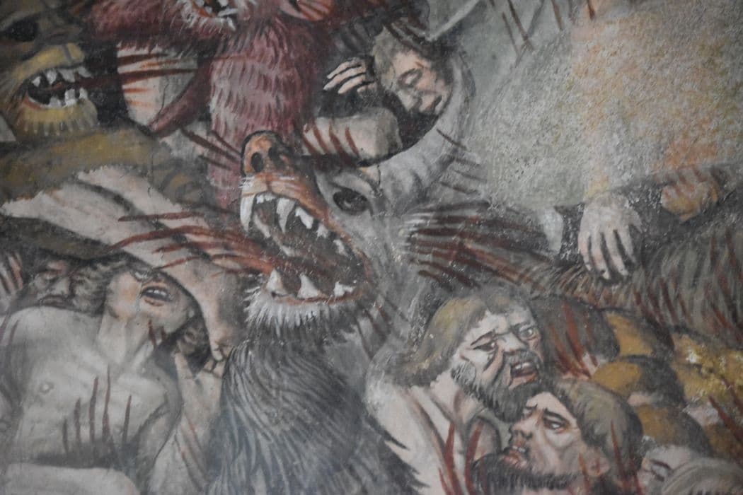 peintures monumentales de la nef, revers du mur ouest : Jugement dernier (le), détail de l’Enfer