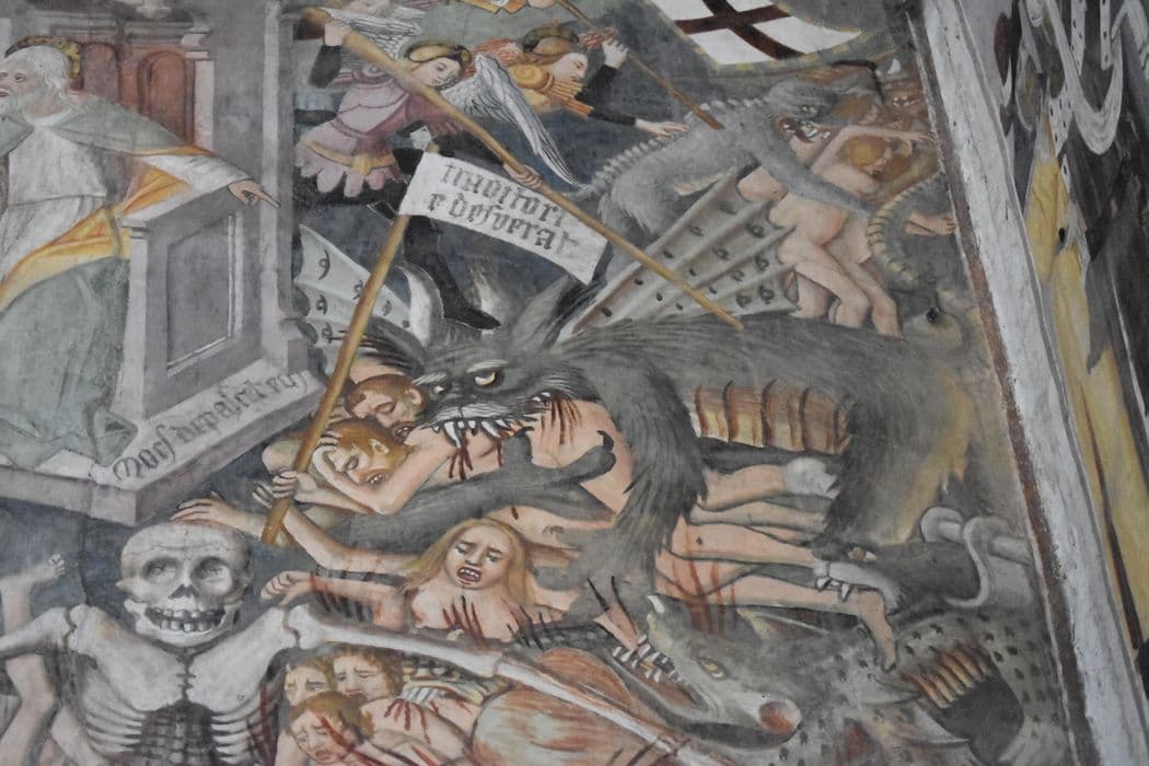 peintures monumentales de la nef, revers du mur ouest : Jugement dernier (le), détail de l’Enfer