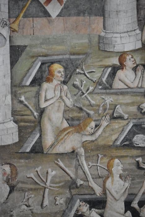 POP | Plateforme ouverte du patrimoinepeintures monumentales de la nef, revers du mur ouest : Jugement dernier (le), détail du Paradis