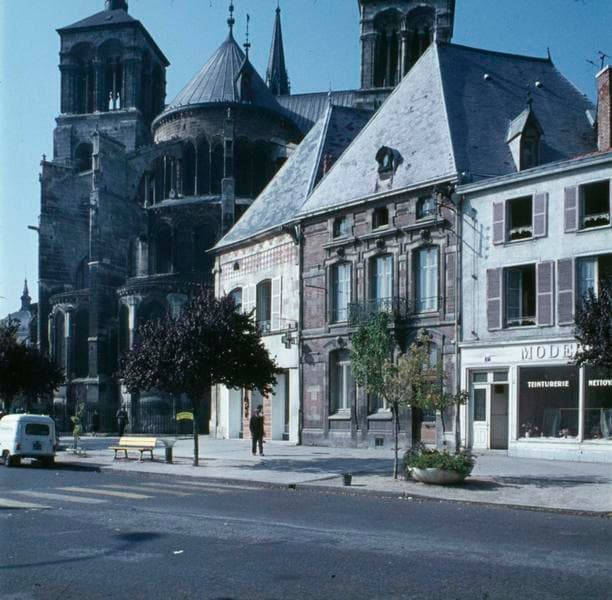 Détail de l'abside et maisons sur rue