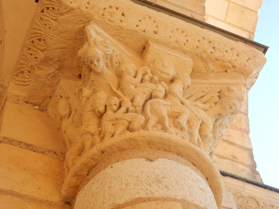 tour-porche, détail d’un chapiteau sculpté