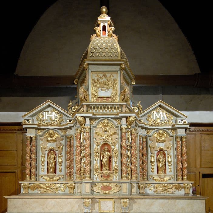 autel, tabernacle, retable, statuettes