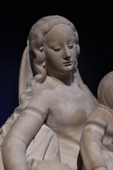 POP | Plateforme ouverte du patrimoinestatue : Vierge instruisant l’Enfant, vue partielle