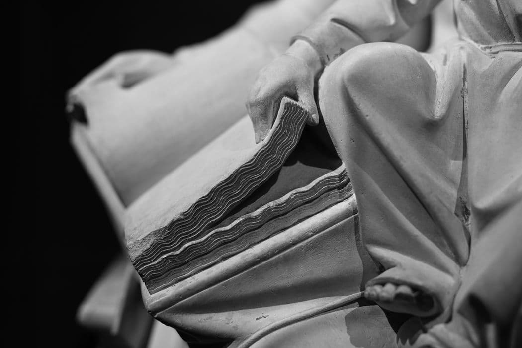 POP | Plateforme ouverte du patrimoinestatue : Vierge instruisant l’Enfant, détail