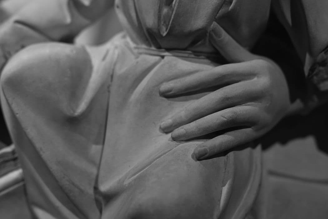 POP | Plateforme ouverte du patrimoinestatue : Vierge instruisant l’Enfant, détail