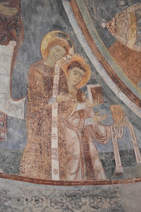 abside du choeur, peintures monumentales du cul-de-four : Christ en majesté, détail de saint Laurent et de saint Vincent