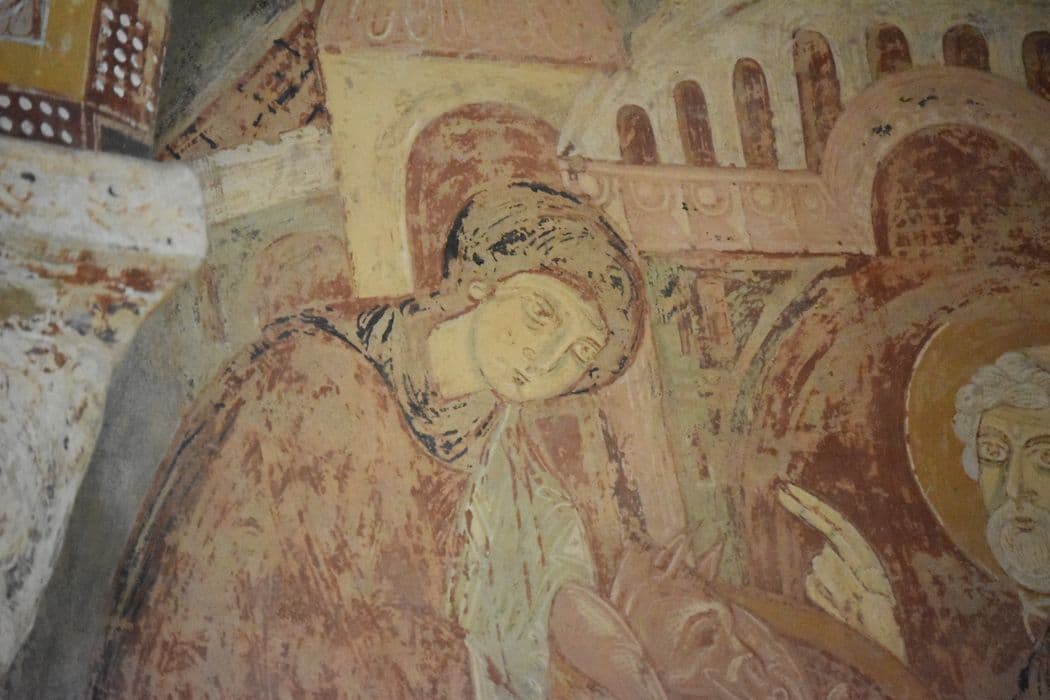 abside du choeur, peintures monumentales de l’arcature aveugle gauche : Martyre de saint Blaise, détail