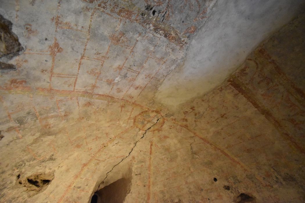 chapelle basse, peinture monumentale (faux pavement) de la voûte, vue partielle