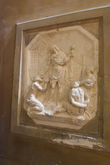 POP | Plateforme ouverte du patrimoinechapelle du croisillon droit, bas-relief : Apparition du Christ à deux prisonniers