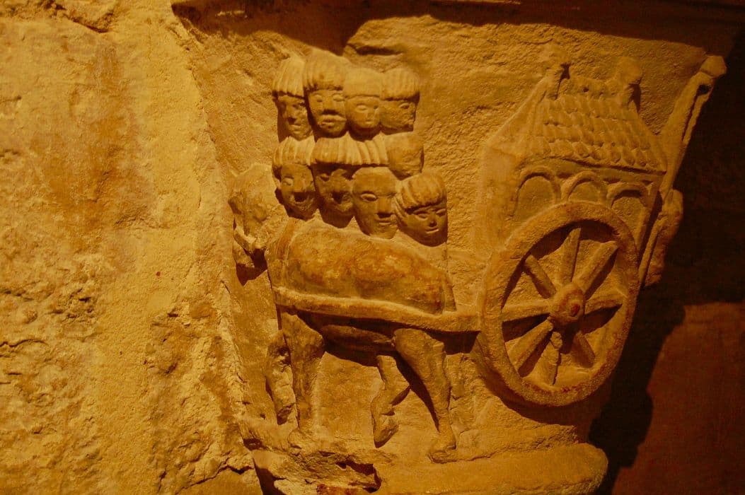 crypte, détail d’un chapiteau sculpté