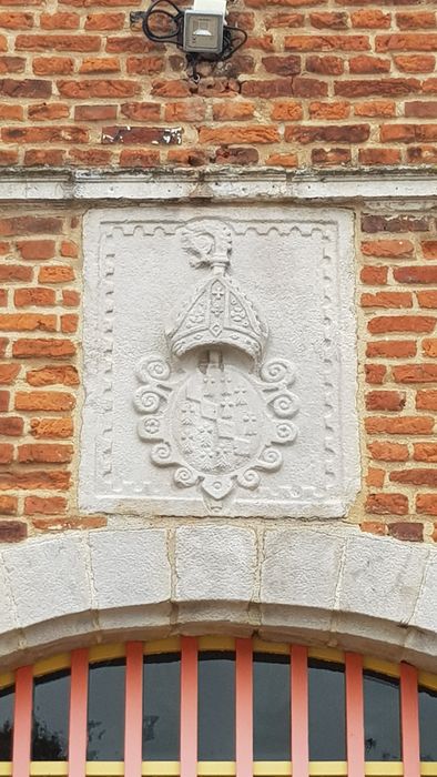 façade sud-ouest, détail d’un bas-relief armorié au-dessus de la porte d’accès
