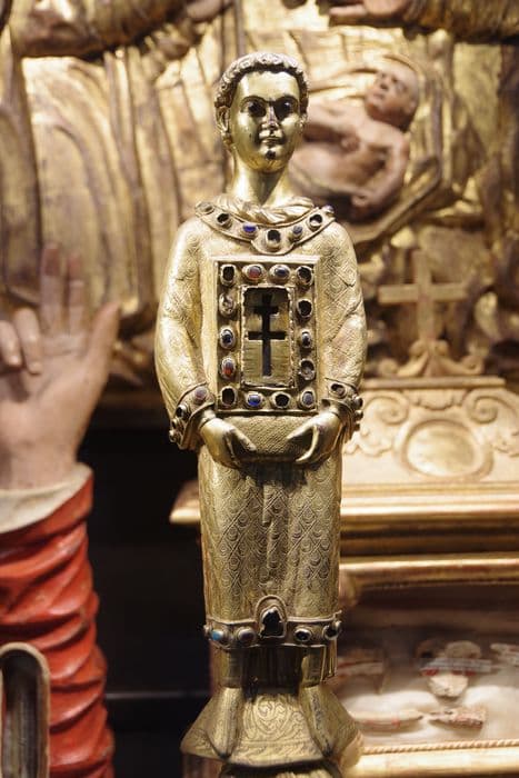 statue-reliquaire de la Vraie Croix : diacre dit saint Étienne de Muret, détail