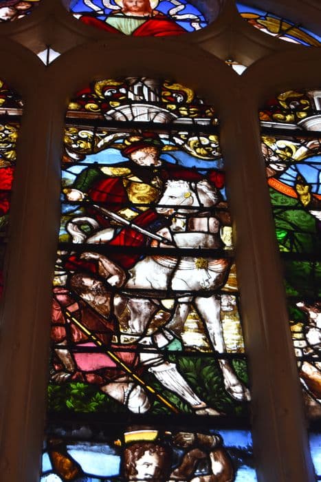 verrière n°7 du déambulatoire, détail : Charité de saint Martin