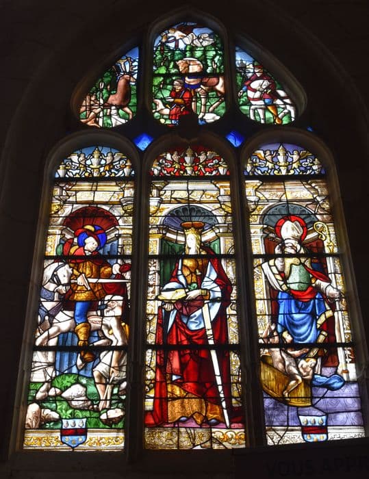 verrière figurée : Saint Martin, Sainte Catherine, Saint Nicolas (baie 12)