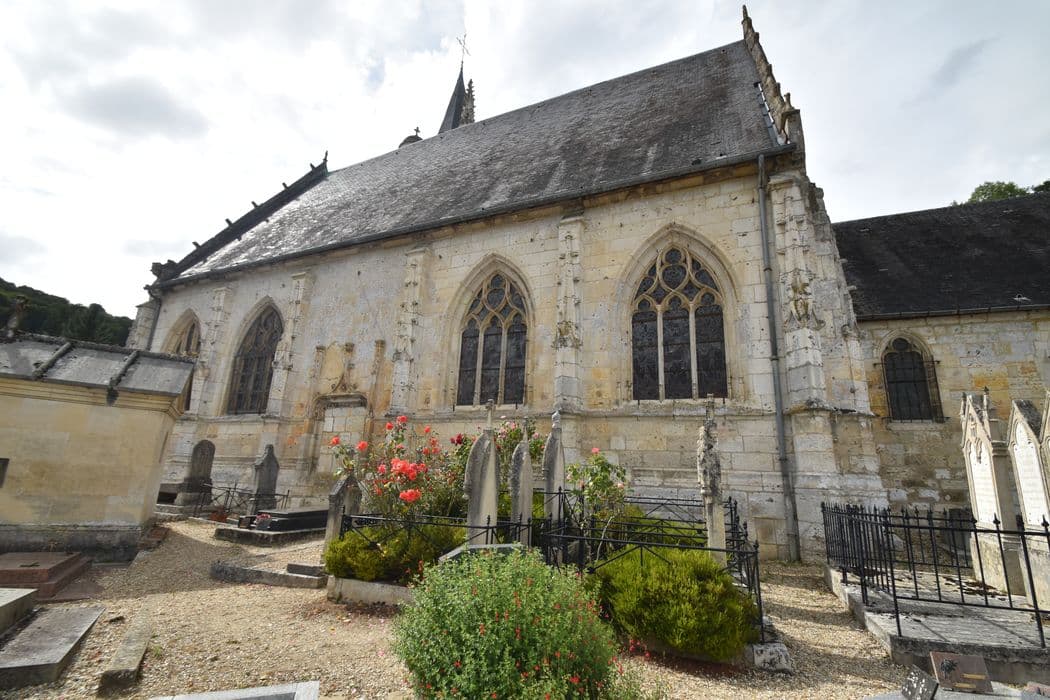 façade latérale sud, au premier plan les sépultures de la famille Vacquerie - Hugo